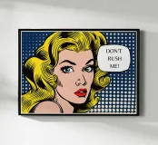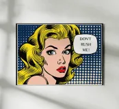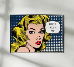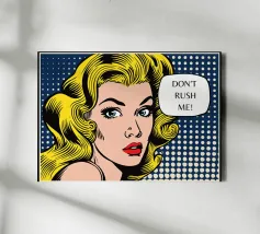 Inno ADHD Questa giocosa illustrazione pop art presenta il ritratto di una donna abbinato a un messaggio umoristico "Don't Rush Me", combinando colori vivaci, stile espressivo e atteggiamento simpatico e sicuro. Il disegno fonde l'energia della pop-art retrò con un tono femminile e spensierato, creando un pezzo divertente che sembra allo stesso tempo elegante e relazionabile. La sua atmosfera allegra e rassicurante lo rende perfetto per le camere da letto, i dormitori, gli uffici domestici, gli spazi di bellezza e gli angoli creativi progettati per l'espressione di sé e della propria personalità.