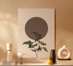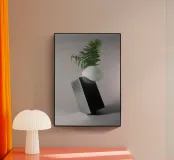Stampa d'arte concettuale "Equilibrio precario"! Questa bellissima e avvincente fotografia cattura un vaso bianco e liscio, simile a un uovo, che regge una felce verde vibrante, drammaticamente in equilibrio su un pesante blocco geometrico scuro inclinato. L'elevato contrasto e la tensione tra la natura organica e la geometria industriale creano una potente dichiarazione di equilibrio e fragilità. Arte da parete perfetta per spazi moderni, minimalisti e contemporanei. Ideale per un soggiorno, un ufficio o una casa in stile scandinavo. Equilibrio, Equilibrio, Arte concettuale, Felce, Pianta, Vaso, Geometrico, Scultura moderna, Minimalista, Contemporaneo