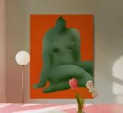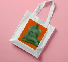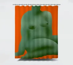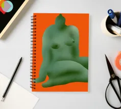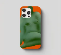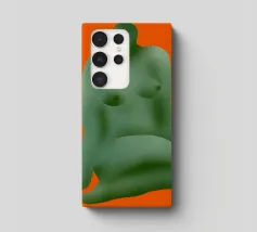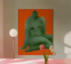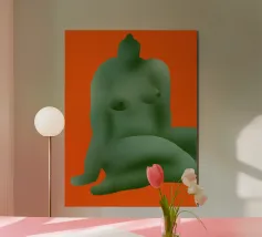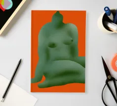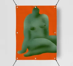 La silhouette stilizzata di una forma umana seduta, di colore verde, si staglia su uno sfondo arancione. La forma appare astratta, con contorni lisci e arrotondati.