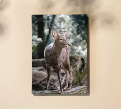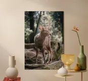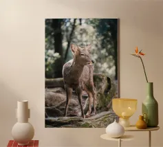 Questa fotografia è stata scattata a Nara, in Giappone. I cervi del parco sono protetti come monumenti naturali e sanno di essere speciali. Persone da tutto il mondo vengono a Nara per incontrare questi bellissimi cervi, che hanno imparato a inchinarsi per ricevere un trattamento (shika senbei).