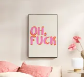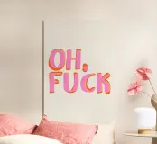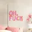 L'immagine mostra un testo in grassetto su uno sfondo chiaro. Il testo recita "OH, FUCK" in lettere maiuscole. La parola "OH" è scritta in rosa con un contorno arancione brillante e la parola "FUCK" è anch'essa in rosa con lo stesso contorno arancione brillante. Il carattere è deciso e arrotondato, per dare al testo un aspetto giocoso ed espressivo. Lo sfondo è monocromatico e mette in risalto il testo colorato.