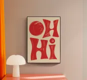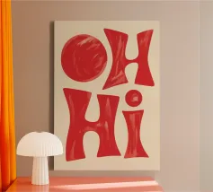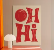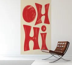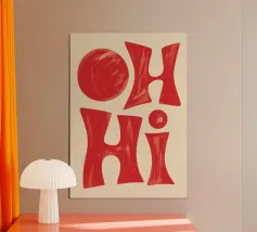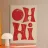 Design tipografico moderno con la scritta "OH HI" in caratteri spigolosi e di grande impatto. Gli elementi "H" testurizzati con pennellate visibili si combinano in alto e in basso, completati da un piccolo cerchio su uno sfondo color crema per un'espressività dinamica.
