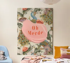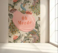 "Oh Merde" unisce l'eleganza a un tocco di giocosa nonchalance. Caratterizzata da maestosi pavoni e fiori delicati, questa accattivante opera d'arte contrasta splendidamente con la frase audace e sfrontata "Oh Merde". Perfetto per aggiungere umorismo e raffinatezza a qualsiasi spazio, "Oh Merde" fa girare la testa e accende le conversazioni, diventando un centrotavola ideale per la casa o l'ufficio.
