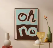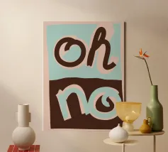 Aggiungete un tocco moderno e giocoso al vostro spazio con la stampa di lettere OH NO. Caratterizzato da lettere minimaliste ma vivaci nei colori blu e marrone, questo poster tipografico di ispirazione scandinava dona colore, stile e personalità a qualsiasi ambiente. Perfetto per soggiorni, camere da letto, uffici o spazi creativi.
