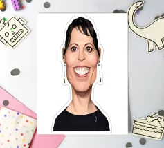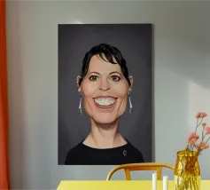 Illustrazione caricaturale umoristica della nota attrice inglese Olivia Coleman. Una delle caricature realizzate per la serie Celebrity Sunday, in cui un personaggio famoso viene ritratto nell'arco di una giornata. L'idea è di mostrarli come in una fototessera per avere coerenza.