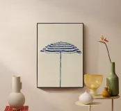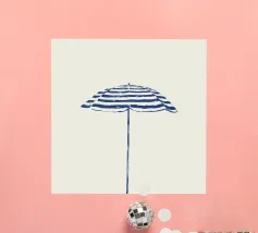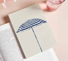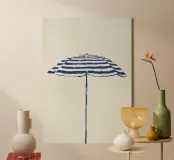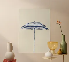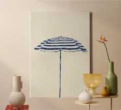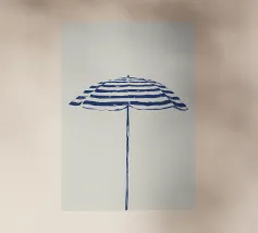 Illustrazione di un ombrellino blu su sfondo beige. Disegno originale creato su Procreate.