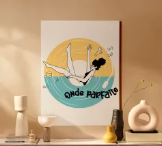 "Onde Parfaite" è un mix perfetto di chill e groove. Una donna, libera e felice, si lascia trasportare dalle onde di un vinile, circondata da note danzanti. Il design emana leggerezza ed eleganza, celebrando al contempo l'energia retrò della musica. È poetico ed elegante, ideale per chi ha la passione per il suono e la creatività.