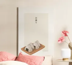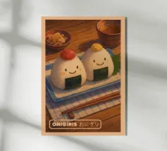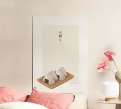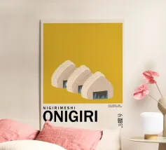 Gusto minimale e fascino giocoso: questo poster onigiri trasforma la parete della cucina in uno spazio elegante e ricco di sapori giapponesi.