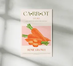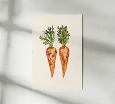 Un'illustrazione digitale presenta un mazzo di carote arancioni vivaci con cime verdi su uno sfondo chiaro. Le carote sono disposte a stretto contatto, evidenziando il loro aspetto fresco e organico.