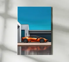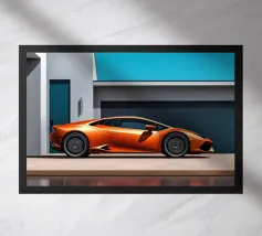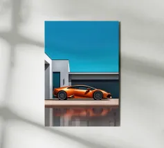 Accendete il vostro spazio con un poster arancione della Lamborghini Huracan, dove il design minimalista e il fascino delle auto sportive moderne convergono in un capolavoro vibrante.