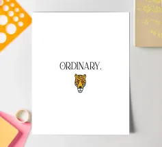 La parola "Ordinary" con una testa di leone. Generato con l'AI (Canva), tra le altre cose.