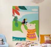 questa affettuosa illustrazione "Bear and Bird"! Questo affascinante disegno raffigura orsi e uccelli che giocano insieme, creando un'atmosfera calda e accogliente per tutta la famiglia.
