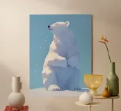 Una serena illustrazione digitale di un maestoso orso polare seduto pacificamente nella gelida natura selvaggia. La sua folta pelliccia risplende sullo sfondo innevato, catturando l'essenza della bellezza e della solitudine artica. Ideale per gli amanti dell'arte della fauna selvatica, per i progetti a tema naturalistico e per i messaggi di conservazione.