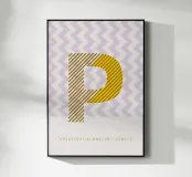 P-TYPEFACE in un design senza tempo - poster tipografico con colori vivaci e un gioco di forme sullo sfondo.