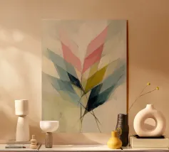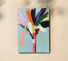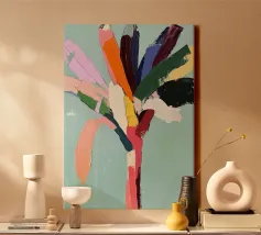 Un astratto strutturato di una palma, che mescola toni sofisticati e pennellate stratificate per un'atmosfera raffinata e moderna.