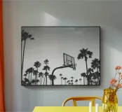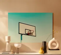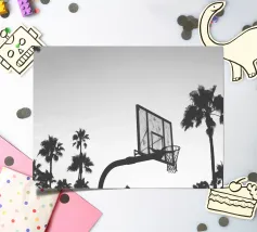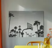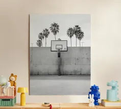 Immergetevi nel mondo unico di "Palms and Hoops", un'opera d'arte in silhouette che combina la tranquilla bellezza delle palme con l'energia dinamica di un canestro da basket. Creata dalla talentuosa Dagmar Pels, quest'opera cattura l'essenza dell'entusiasmo sportivo e della natura serena in un'unica immagine, perfetta per portare ispirazione e calma in qualsiasi spazio.