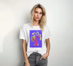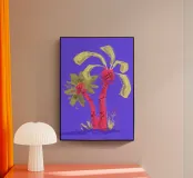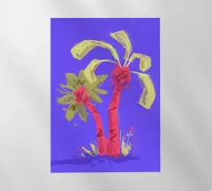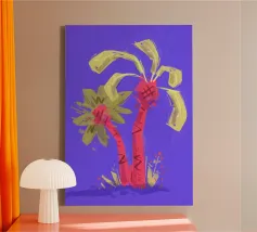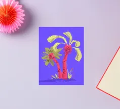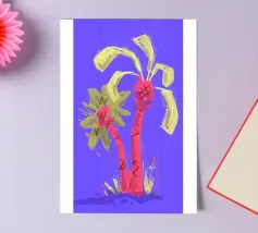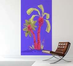 Due palme. Motivo estivo dipinto a mano.