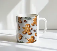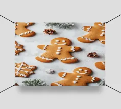 pan di zenzero biscotti fiocchi di neve glassa pigne rami di pino vacanza Natale prodotti da forno pasticceria glassa volti sorridenti tema invernale dessert natalizio festoso biscotti tradizionali glassa bianca aroma di cannella decorazione natalizia dolcetti natalizi