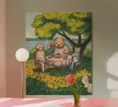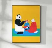 Amante degli animali? Questa illustrazione di panda e cane è la scelta perfetta per voi! Questo simpatico e colorato disegno è perfetto per un regalo o una collezione personale.