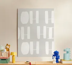Tipografia giocosa in morbide aree bianche su uno sfondo grigio-beige: minimalista, affascinante e ammiccante. Quest'opera d'arte dona leggerezza e umorismo a qualsiasi ambiente e dimostra che il design può essere anche divertente. Un pezzo forte per chi ama le forme chiare e un pizzico di ironia.