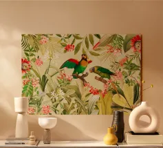 Design della giungla verde con gli uccelli più belli e tropicali.