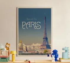 Un poster di viaggio senza tempo ispirato al fascino di Parigi, che cattura scenari iconici in uno stile retrò vintage. Con un'armoniosa miscela di colori e composizioni, quest'opera d'arte porta vibrazioni nostalgiche e voglia di viaggiare sulle vostre pareti - perfetta per i viaggiatori, gli amanti del design o chiunque sogni Parigi.