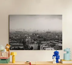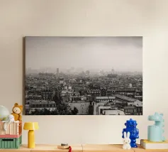 Panorama di Parigi visto da Montmartre in una giornata di nebbia