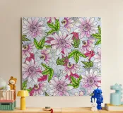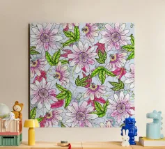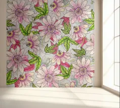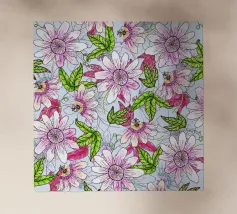 The "Passion flower" design shows a stylised passion flower in full bloom. Filigree petals, fine structure and harmonious colouring give the motif an elegant botanical look. It brings the beauty of nature into the home and looks modern and timeless at the same time. Ideal for enriching living spaces with a touch of lightness and organicism.