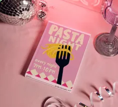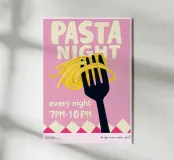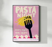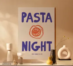 Un'illustrazione affascinante con un'atmosfera da tavola calda retrò e un umoristico romanticismo quotidiano: gli spaghetti sulla forchetta simboleggiano le serate insieme, i piccoli rituali e l'amore senza complicazioni. I colori vivaci, lo stile dipinto a mano e la tipografia giocosa fanno di questo poster una calda dichiarazione per la cucina o la sala da pranzo. Ideale per chi associa il buon cibo alle emozioni. Illustrazione contemporanea in stile arte moderna con una strizzata d'occhio nostalgica.