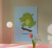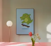 Porta un tocco di allegria nella stanza dei tuoi bambini con questa adorabile stampa artistica raffigurante un coccodrillo. Con un allegro coccodrillo verde dalle guance arrossate e gli occhi chiusi su uno sfondo rosa tenue, questa illustrazione trasmette calma e fascino. Perfetta per camerette, stanze dei bambini o come tocco stravagante in qualsiasi spazio giocoso.