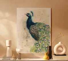 Abbracciate il fascino straordinario di questa coloratissima stampa di pavone maschio, che mostra i suoi abbaglianti disegni di piume e le sue vibranti tonalità. Questa squisita stampa fotografica sulla fauna selvatica è un must per gli amanti degli uccelli e aggiunge un tocco di eleganza esotica a qualsiasi spazio.