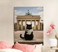 "Questo collage surreale trasporta lo spettatore in una scena iconica con una svolta inaspettata: un gattino gigante appollaiato in cima all'Empire State Building di New York. In un chiaro omaggio al classico film di King Kong, il felino sovrasta la città con un mix di dolcezza e potenza. La combinazione tra l'imponenza del grattacielo e l'innocenza del gattino crea un'immagine tanto assurda quanto affascinante, trasformando una scena tesa in una parodia visiva che fa sorridere e accende l'immaginazione".