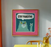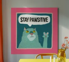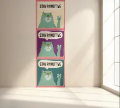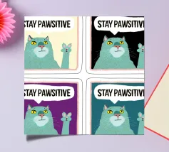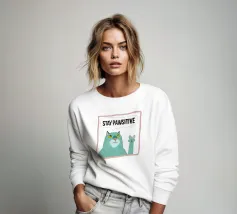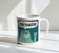 Illustration einer nicht sehr attraktiven Katze mit positiver Einstellung. Gemeinsam mir ihr kannst du dich für den Friedensgedanken in verrückten Zeiten stark machen. Das Motiv ist auf transparentem Hintergrund, so kannst du eigene Hintergundfarben wählen. Text kann auch hinzugefügt werden. Viele Freude beim Personalisieren!