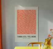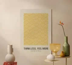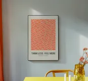Questo poster combina un motivo di nuvole di ispirazione tradizionale con una moderna combinazione di colori corallo - morbidi, caldi e positivi. Il messaggio "Think Less. Feel More - Mindful Bliss" completa il disegno per creare un quadro d'insieme armonioso per ambienti pieni di leggerezza. Ideale per camere da letto, spazi abitativi luminosi o oasi creative che intendono irradiare gioia e consapevolezza.