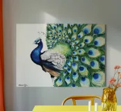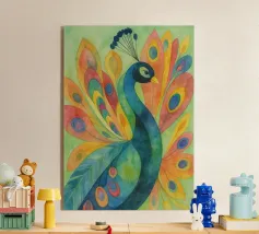 Illustrazione di pavone dipinta a mano ad acquerello.