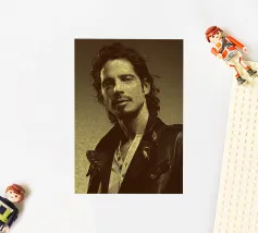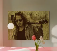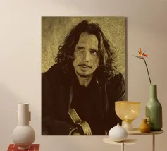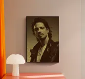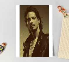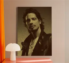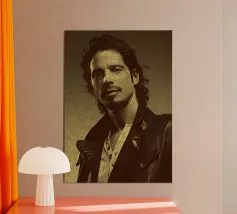 Incorniciato da pelle e ombre, Chris Cornell risplende con calma e intensità. Una miscela di rock e anima poetica, catturata con pennelli e toni.