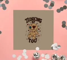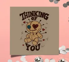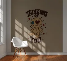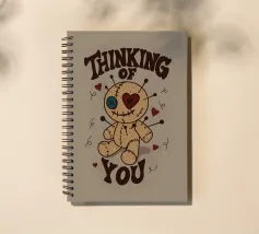 Una simpatica bambola voodoo con occhi a bottone, cuciture e dettagli a cuore è circondata da spille e cuori fluttuanti. Questo disegno giocoso unisce affetto e ossessione in un unico irresistibile pacchetto. Perfetto per i fan dell'umorismo spettrale, dell'estetica alternativa o per chiunque ami i disegni oscuramente adorabili.