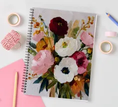 A painterly composition of deep red, soft pink, and ivory blooms evokes cozy elegance. The perfect touch of warmth for a curated interior.