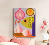 Una moderna illustrazione di un pesce in una composizione di natura morta.
