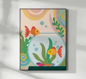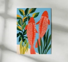 Questa illustrazione rilassante presenta una varietà di pesci colorati che nuotano con grazia in una vibrante barriera corallina.
