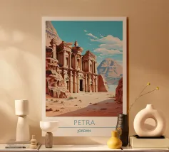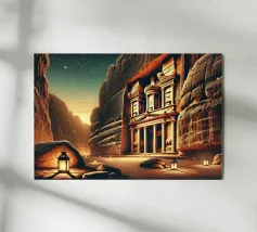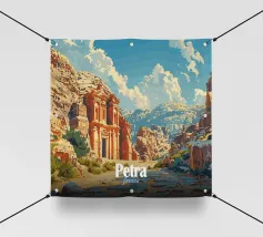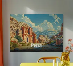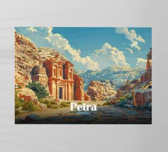 Petra formazioni rocciose deserto architettura antica facciata scogliere sito archeologico arenaria punto di riferimento storico attrazione turistica rovine canyon Medio Oriente paesaggio naturale sito del patrimonio antichità struttura in pietra valle luce del sole cielo blu