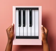 Un'immagine minimalista dei tasti in bianco e nero di un pianoforte, per contribuire a dare sapore alla vostra vita, in segno di stupore e apprezzamento musicale.