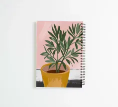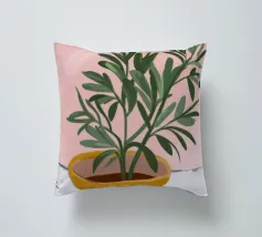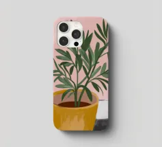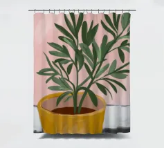 Questa immagine mostra una pianta in vaso con sottili foglie verdi in un vaso giallo su una parete rosa. Il contrasto tra la pianta e lo sfondo crea un effetto visivo piacevole e rilassante.