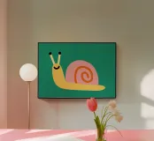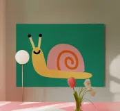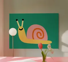 Illustrazione di una piccola lumaca ridente su sfondo verde