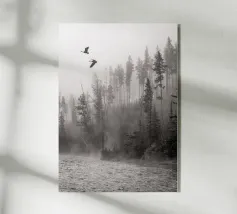 Fotografia di paesaggio di pini in bianco e nero. Originale dell'NPS.