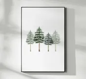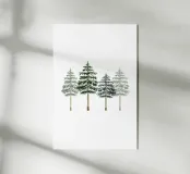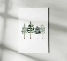 Questo suggestivo acquerello mostra quattro abeti riccamente dettagliati in varie tonalità di verde, dal ricco verde della foresta al grigio nebbioso e delicato. La disposizione naturale e la pennellata fine conferiscono al motivo calma, profondità e un'atmosfera invernale e fiabesca. Ideale per tutti coloro che amano i motivi naturalistici e desiderano conferire alla propria casa una dolce atmosfera forestale.
