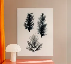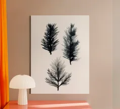 Un trio meditativo di forme di aghi di pino rese con lavaggi neri e grigi. Questo studio minimalista mette in evidenza sottili variazioni nella pressione del pennello e nel flusso dell'acqua, catturando la consistenza, il ritmo e l'essenza del fogliame sempreverde. Perfetto per moodboard, stampe o decorazioni di ispirazione zen.
