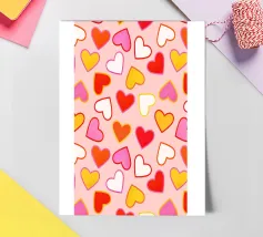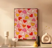 Questo delizioso disegno presenta una serie giocosa di cuori color caramella, perfetti per aggiungere un tocco di dolcezza zuccherina a qualsiasi progetto. Ideale per San Valentino, per i disegni dei bambini o per chiunque ami i motivi stravaganti. I contorni di ispirazione retrò e la palette di colori tenui creano un'atmosfera dolce e nostalgica. Creato da showmemars