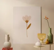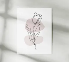 Illustrazione floreale moderna e minimalista con stelo color terracotta e petali rosa tenue. Perfetta per chi ama il design contemporaneo e ispirato alla natura, con un'atmosfera calda e organica. Il suo stile semplice ed elegante si integra perfettamente con gli interni scandinavi, boho o minimalisti, aggiungendo un sottile fascino botanico a qualsiasi spazio. Ideale per creare un'atmosfera accogliente e artistica nella vostra casa.