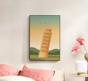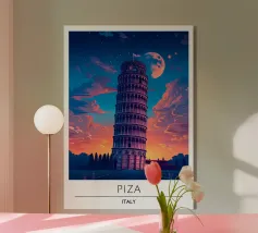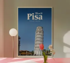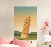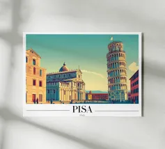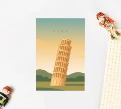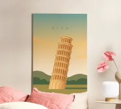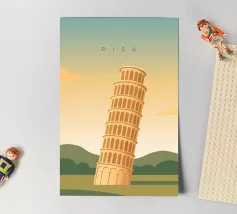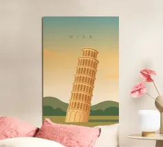 Design minimalista per l'Italia con la famosa torre pendente di Pisa. Tipico motivo italiano. Idea regalo decorativa per chi ama i viaggi a Pisa e in generale in Italia.